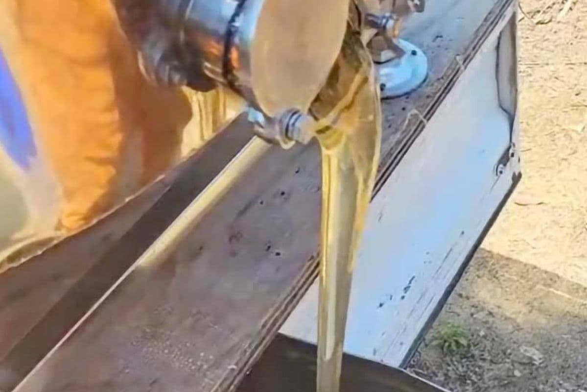 巣から取り出した蜜を遠心分離機で抽出し、ろ過して不純物を取り除くことでクリアなハチミツになります。この段階でできるだけ加工を加えないことが、質を保つポイントです。